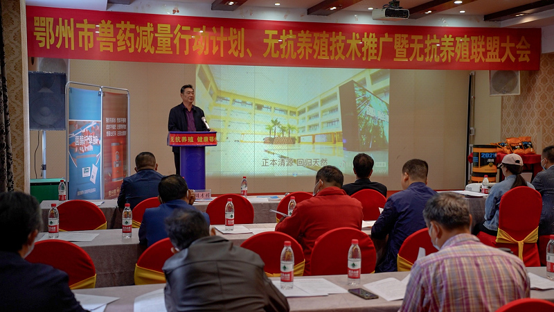 會上,鄂州市畜牧獸醫(yī)服務(wù)中心相關(guān)負(fù)責(zé)同志對《湖北省獸用抗菌藥使用減量化行動工作方案(2021-2025)》進(jìn)行了解讀,大禹公司專家作無抗養(yǎng)殖專題技術(shù)講座,參會畜禽養(yǎng)殖場及相關(guān)企業(yè)簽署了無抗養(yǎng)殖《倡議書》,養(yǎng)殖場、養(yǎng)殖專家就無抗養(yǎng)殖技術(shù)普及工作進(jìn)行了深入交流。