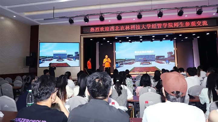 6月26日,由西北農(nóng)林科技大學(xué)經(jīng)濟(jì)管理學(xué)院副院長汪紅梅教授帶隊(duì),近60名經(jīng)濟(jì)學(xué)專業(yè)師生到我公司參觀交流。公司總經(jīng)理閆凌鵬、副總經(jīng)理麻嘯濤、羅鵬等領(lǐng)導(dǎo)進(jìn)行了熱情接待。