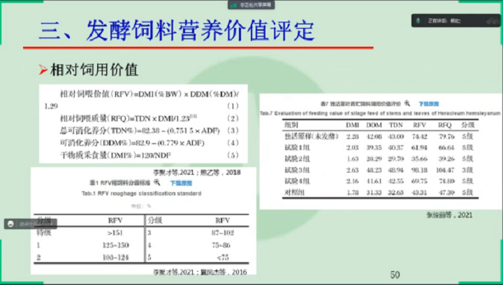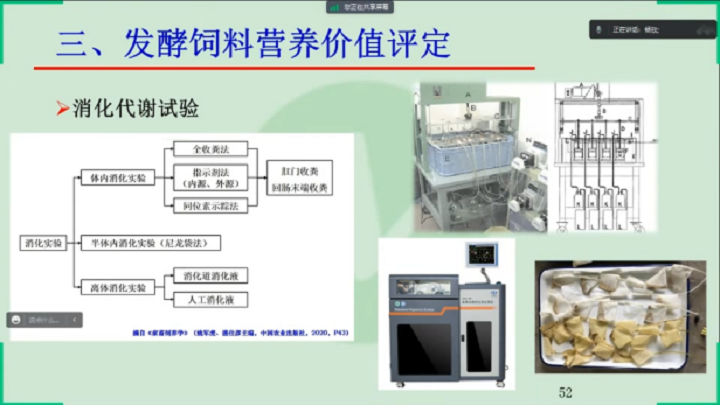 楊教授從發(fā)酵飼料進展概述、發(fā)酵飼料質量評價與檢測以及發(fā)酵飼料營養(yǎng)價值評定三個方面講解了發(fā)酵飼料質量檢測與營養(yǎng)價值評定。